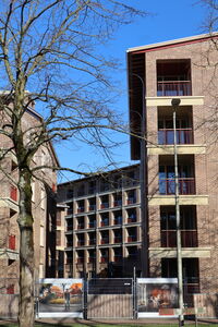 Aan de architect de eer om nieuwbouw met 141 sociale huurappartementen voor met name senioren de uitstraling te geven van een natuurlijke schakel tussen deze drie. “Vooral van Tuindorp ging ons hart sneller kloppen. Maar het ging bij dit project om sociale woningbouw, dus de budgetten waren beperkt. We moesten daarom heel goed nadenken hoe we dit zouden neerzetten”, zegt architect Jan Beelen. “In plaats van het stedenbouwkundige plan met één groot gebouw met galerijontsluiting, kozen wij voor een ontwerp van vijf opklimmende woonblokken rondom een gezamenlijke binnenplaats. Alle blokken hebben een eigen entree waarmee de kleinschaligheid van het Tuindorp wordt nagebootst.” Hiermee anticipeerde de architect op het plan om er ouderen uit Tuindorp te huisvesten.